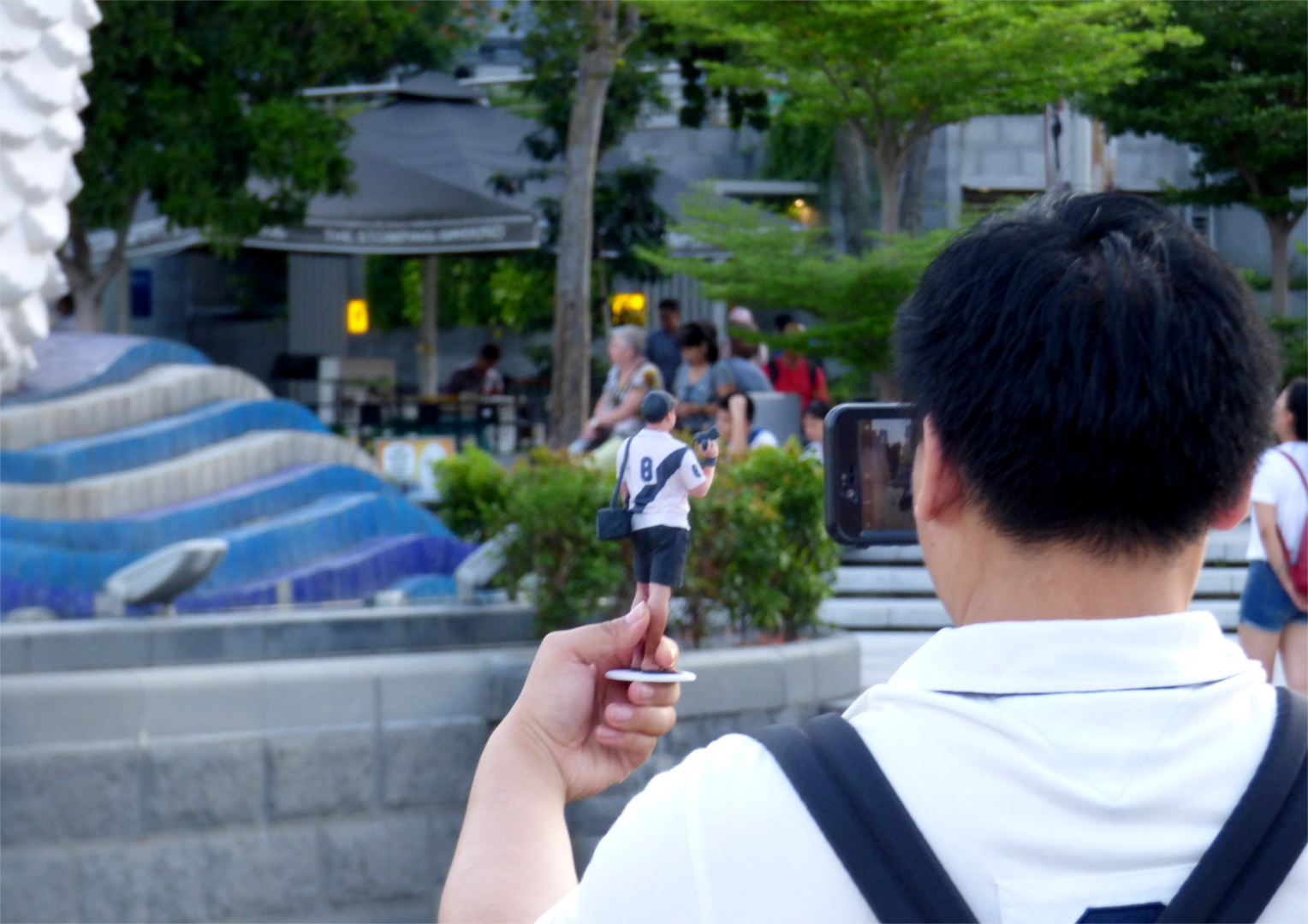 Originally we planned to visit the Zoo today, too, but time is running out for that, so instead we check out the other side of Marina Bay. Here I spontaneously start the photography series 'Posing Asians' before we get something to eat in one of the so-called Hawker Centres (that's the Food Courts that Jan already mentioned). If you find yourself in Singapore at some point, you can't miss that! The variety of different foods is huge, we rarely have any idea what exactly we are eating, but everything tastes great.