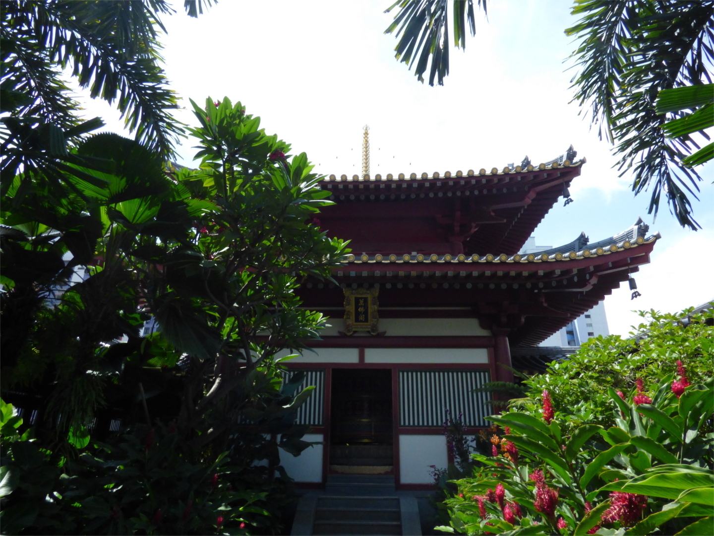 In the temple's rooftop garden