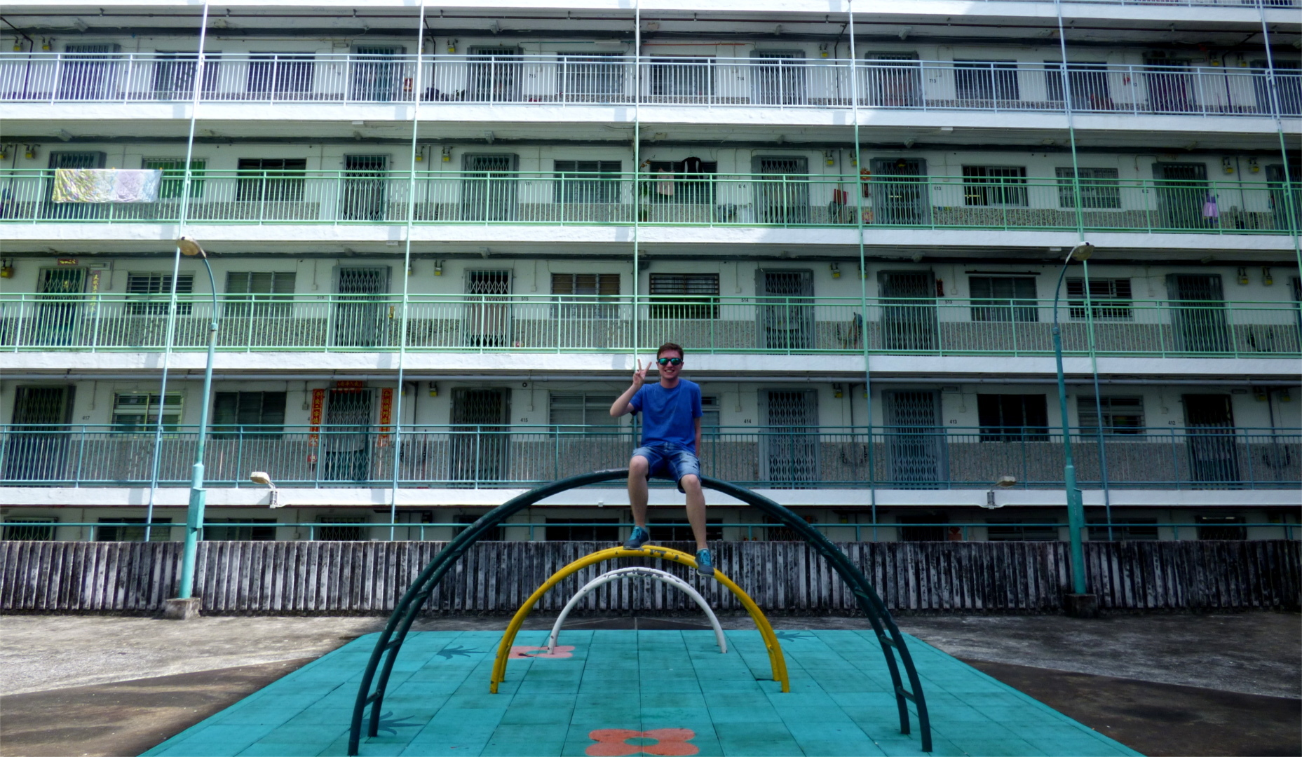 After we're done, we relax in the shade of some sort of barricade until one of the security guards shoos us away — which takes a little over 30 minutes. For our many readers visiting Hong Kong in the next couple of days: As per the bucket list's demands, I hid a creatively decorated three of hearts up here — maybe you'll find it.