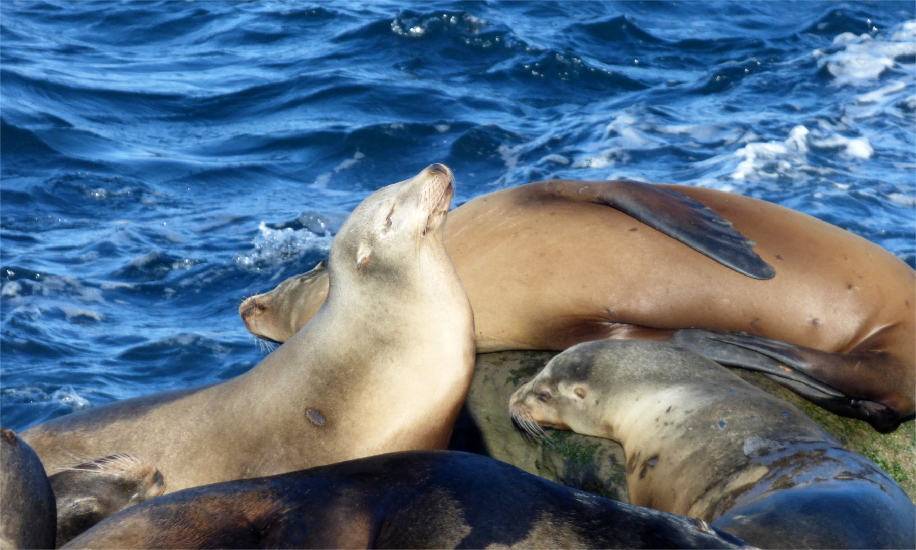 We still only really start our day about two hours later after Jan fell back asleep — we're taking a bus to La Jolla, a rich neighbourhood on the shore with pretty scenery. The beach here is occupied by a few sea lions taking in the sunshine.
