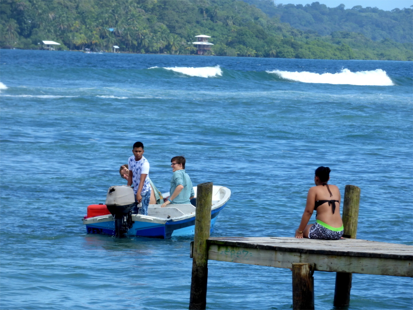 We spend what remains of the day on the beach and head over to Isla Colon again for dinner — on our way Jan is dragged into a rather interesting conversation:
