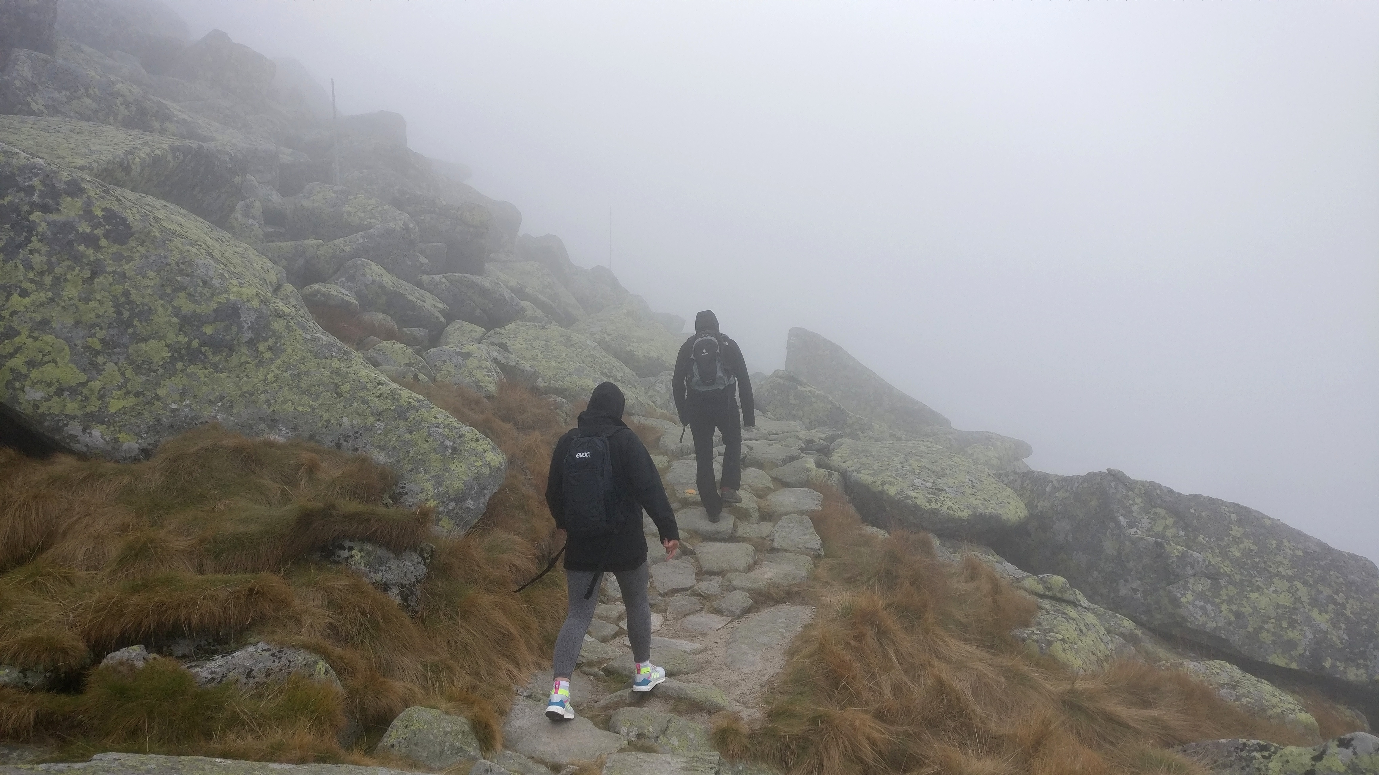 Außerhalb von Bratislava geht's dann erstmal ans Wandern. Am Fuß des Chopok ist es noch sommerlich warm, auf 2024 Metern höhe hat's dann auf einmal -1°C bei Wind, der uns fast vom Bergkamm in den Abgrund bläst und einer Sichtweite von vielleicht zehn Metern. Von der Berglandschaft sieht man zwar nichts, dafür gibt's hier oben aber ganz nette Endzeitstimmung. Hat auch was.