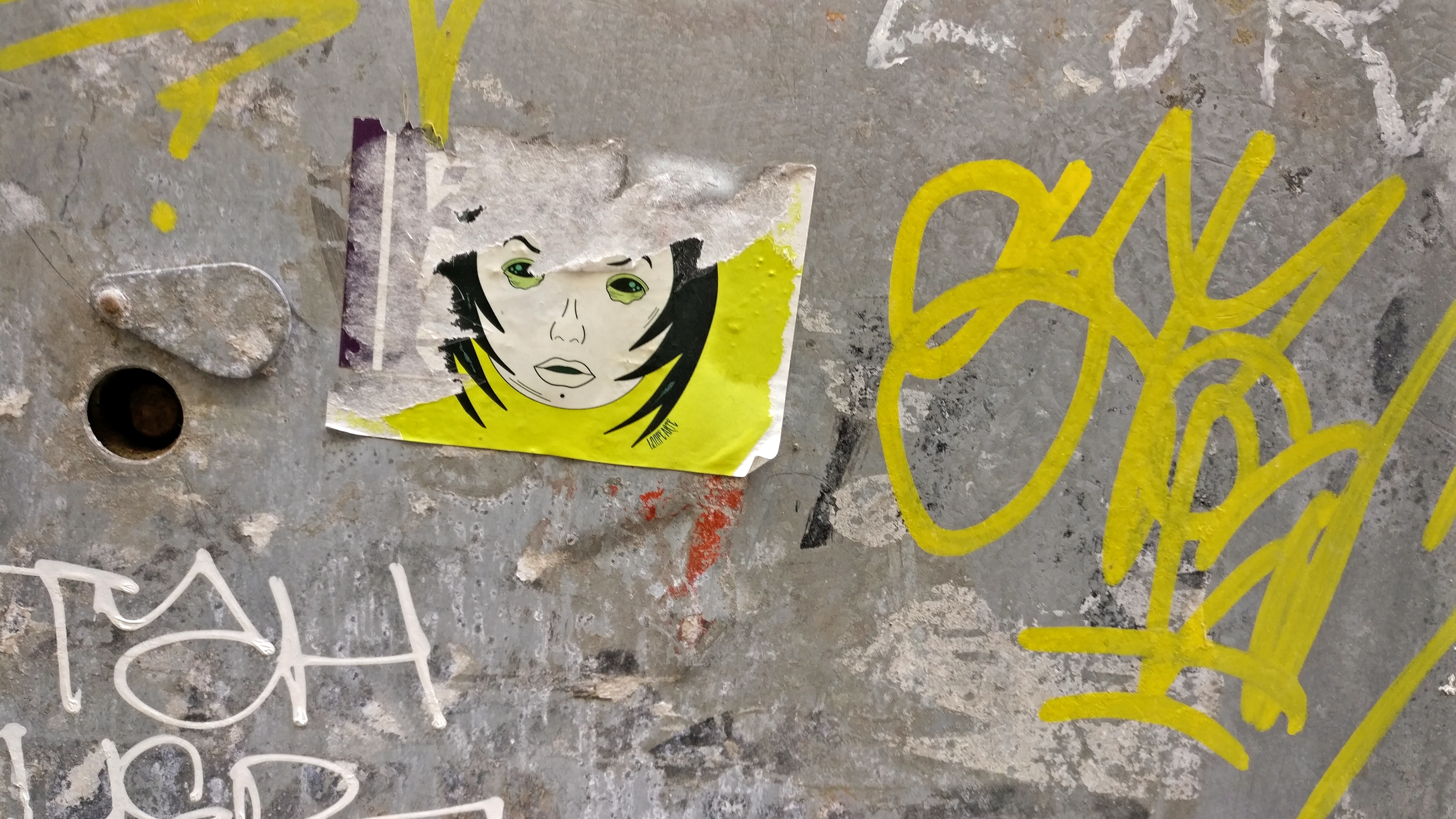 Einer der an der Wand hängenden bunt bekritzelten Spiegel verkündet: