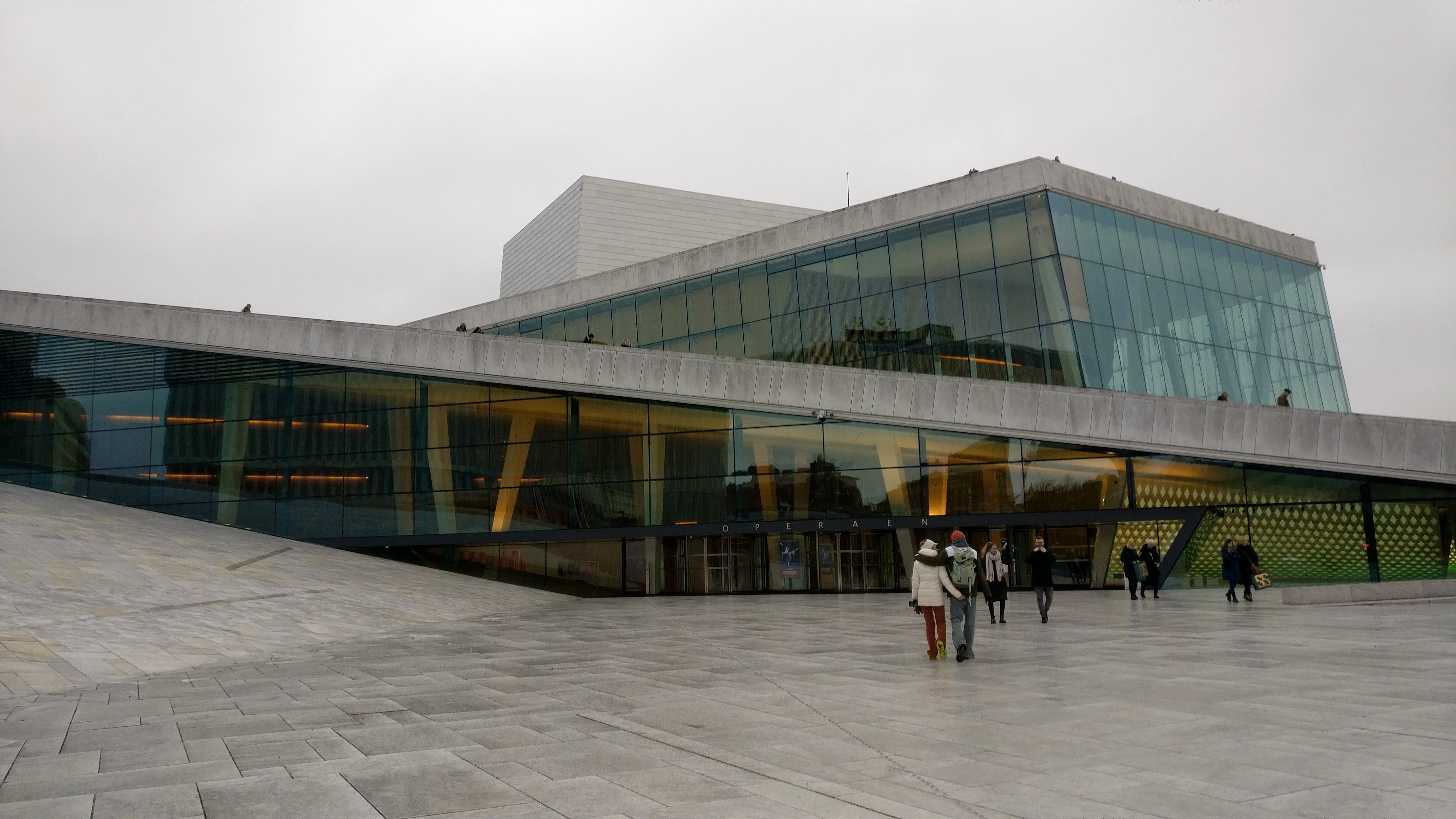 The opera house is stunning from all angles, but what really sells it is that you can walk up all over the roof. And it's not like it was designed to accommodate that, in an attraction sense — there are few steps, no signs or gates or railings or opening times. Just large intersecting sloped surfaces for anyone to climb. It really is just another public space, and that feels radical and satisfying. At least one guy even made the slopes part of his jogging route.
