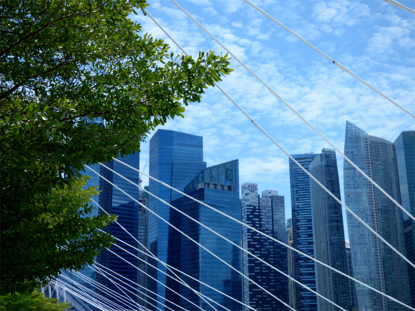 The nearby 'Gardens by the Bay' park is a very green spot right in the heart of the city. There's a lot of green here in general — it's not uncommon to see bushes and trees on or even in the buildings themselves.